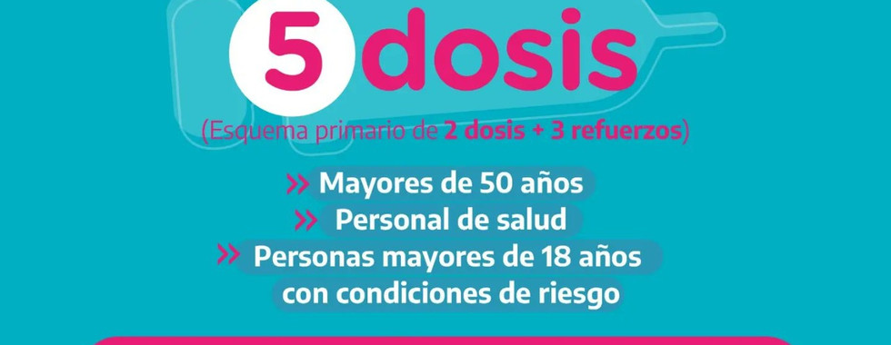 *5 dosis (esquema primario de 2 dosis + 3 refuerzos): mayores de 50 años, personal de salud y personas mayores de 18 años con condiciones de riesgo. Deben pasar 4 semanas entre cada dosis del esquema primario, y 4 meses entre refuerzos.